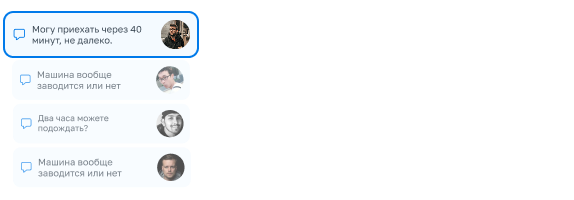В зависимости от типа заявки, вы получите до 10 откликов из категорий: эвакуация, прикурить, шиномонтаж. Или с вами свяжется специалист по ремонту авто.